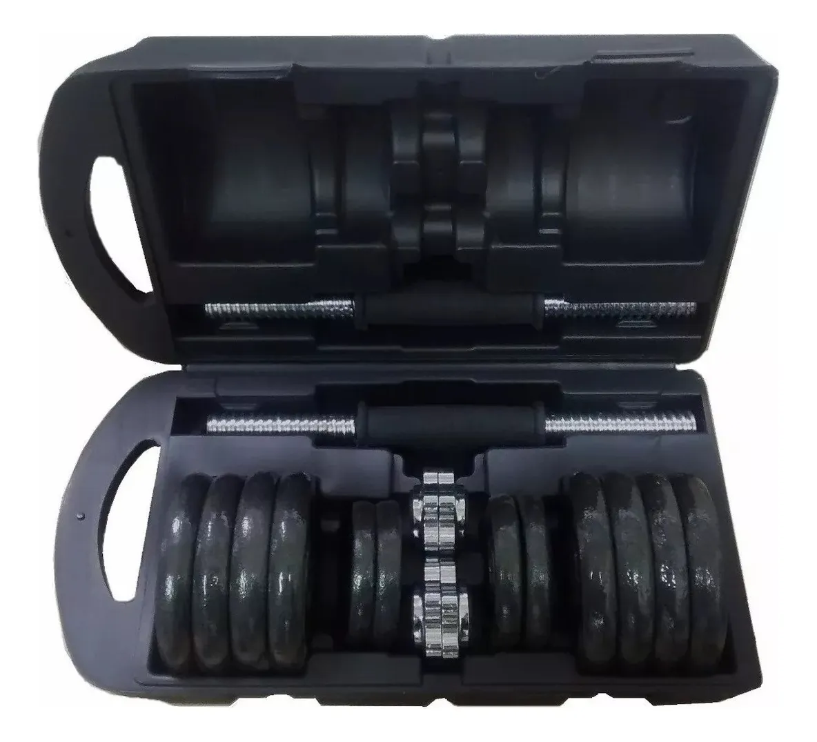 Y lo mejor: al incluir roscas de ajuste y un maletín organizador, tendrás tus mancuernas siempre seguras y listas para usar sin ocupar espacio en casa.