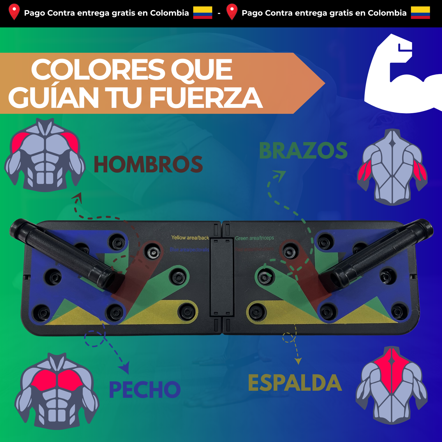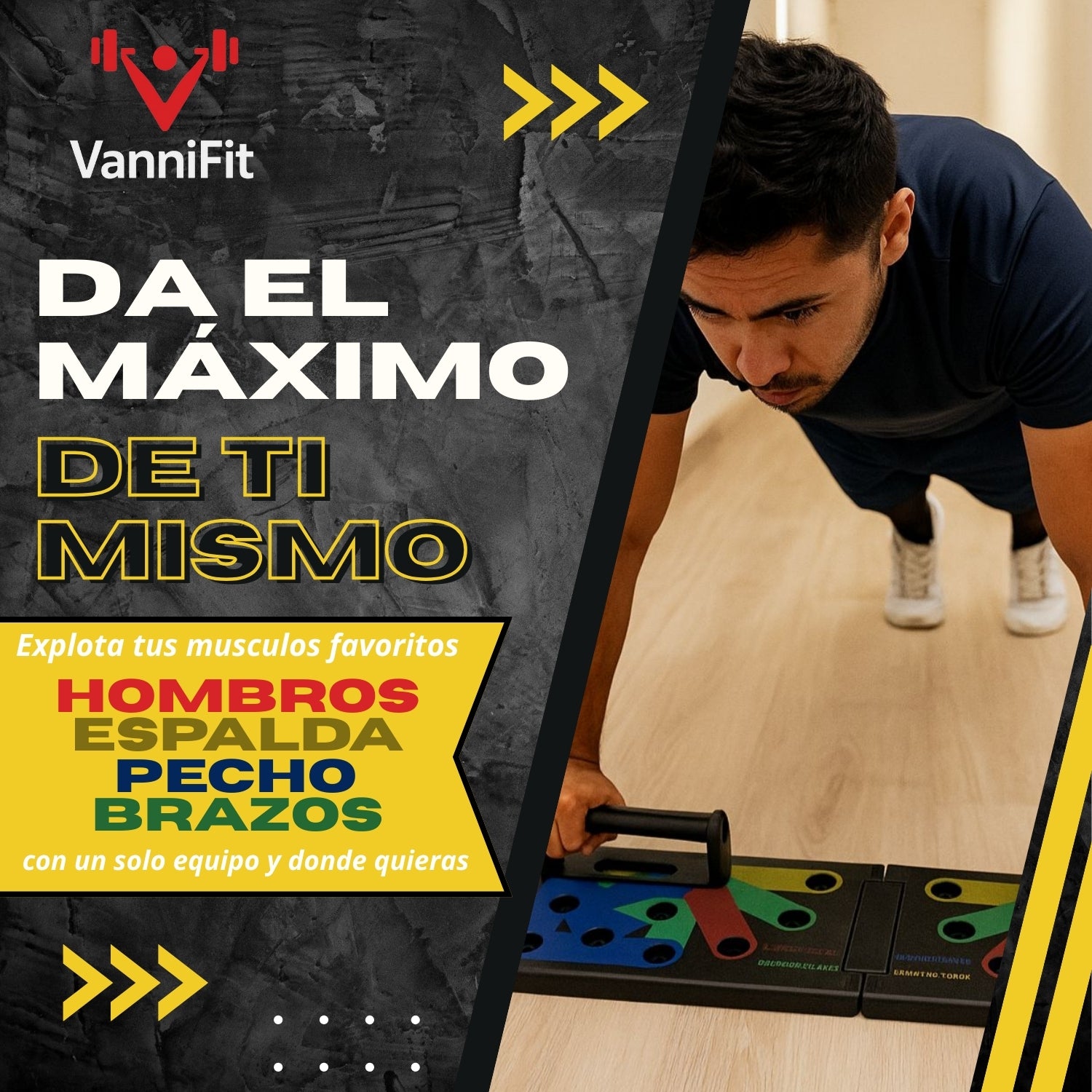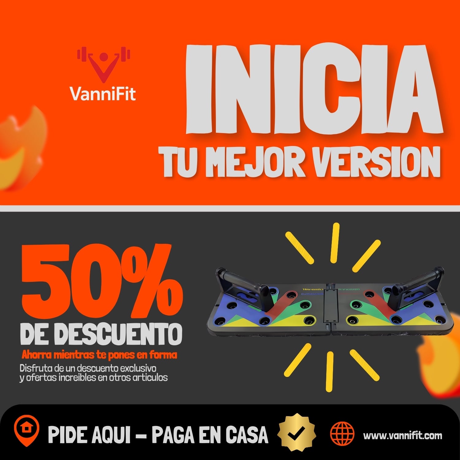 Olvídate de excusas y comienza tu mejor version. Con la Tabla de Flexiones Multifuncional VanniFit fortalece tu pecho, espalda, hombros y tríceps en un solo equipo, con solo cambiar la posición de los agarres.